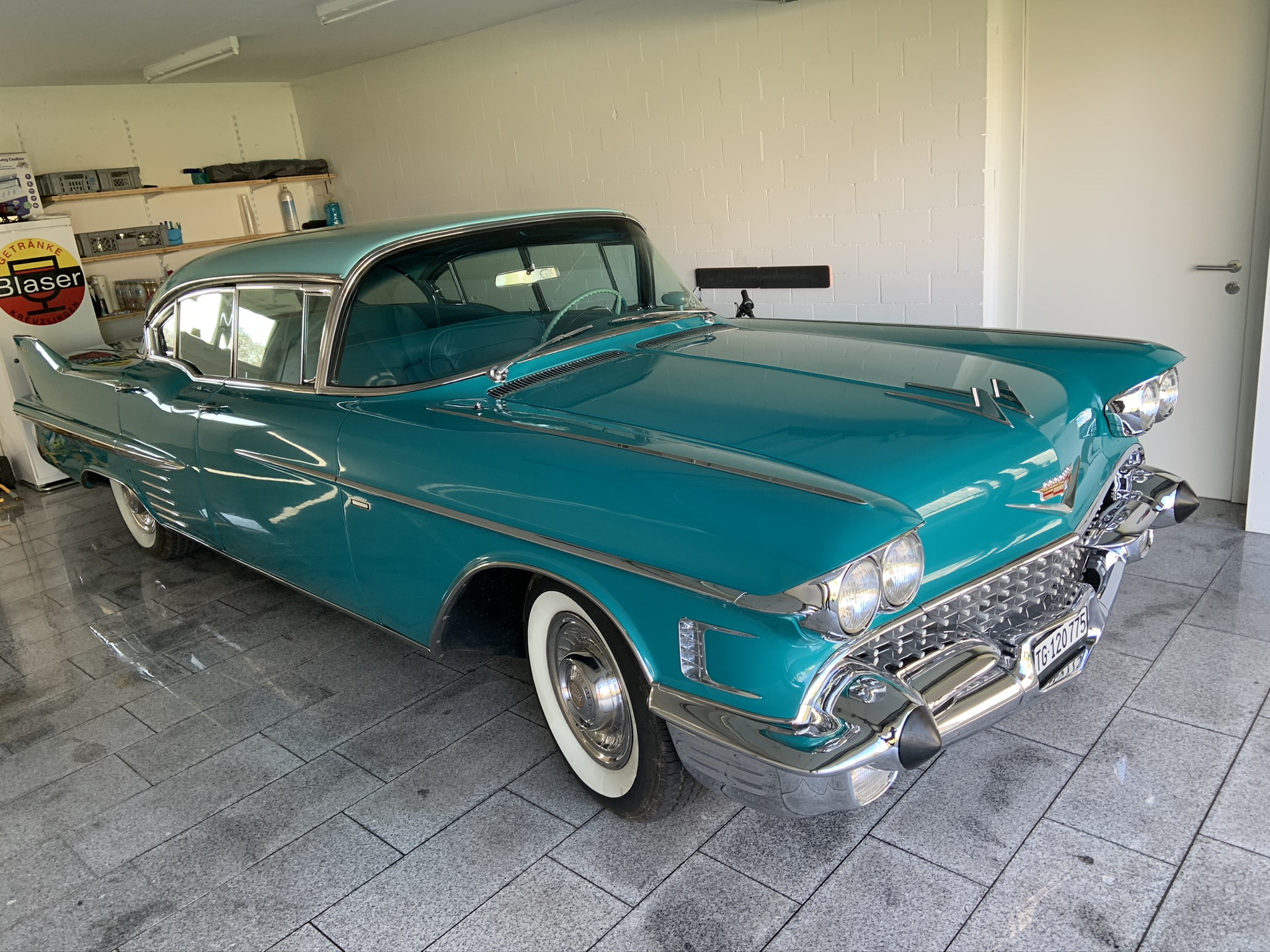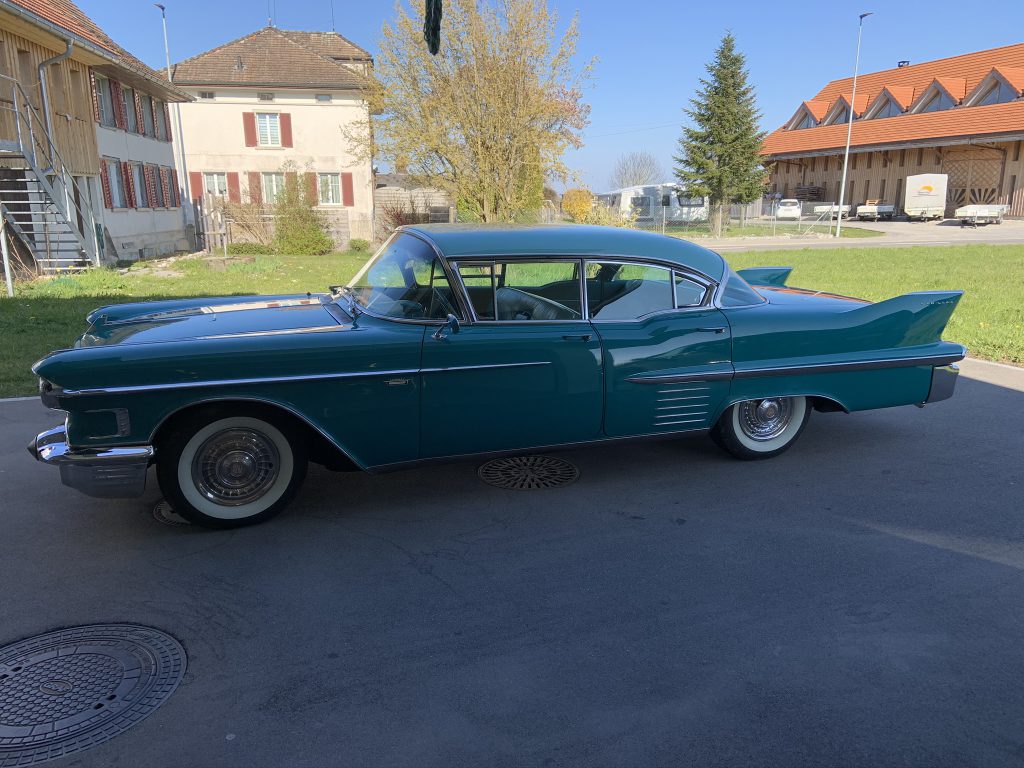 Ein sehr auffälliges Auto nicht nur mit seinen 6.10 m Länge, sondern auch mit seiner original Petrolgrünen Farbe. Ein Hingucker auf jeder Strasse.